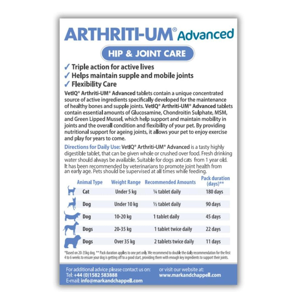 Support your pet’s mobility and comfort with VETIQ Advanced Hip & Joint Care Tablets, a highly effective nutritional supplement designed to maintain healthy joints, flexible movement, and strong bones. Specially formulated with powerful active ingredients, these tablets help support ageing hips and joints so your pet can continue to enjoy an active, happy lifestyle.