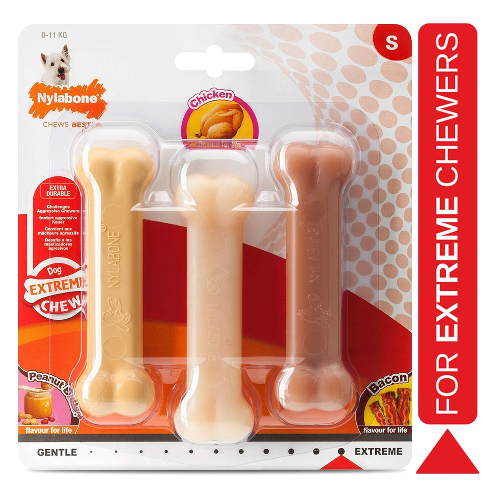 Give your dog the ultimate chewing experience with this trio of durable, flavour-packed Nylabone chews. Designed for enthusiastic chewers, each bone offers satisfying texture, long-lasting toughness, and irresistible taste.